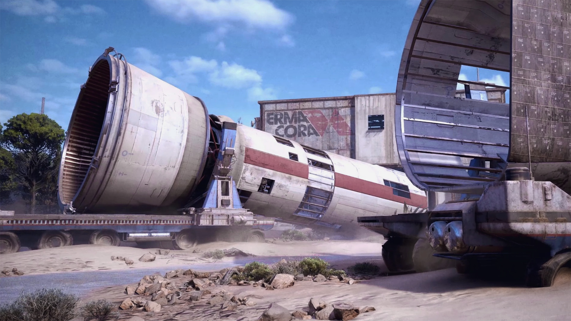 These thrusters are closer to Control Tower A6 and Container Storage than to the Rocket Assembly building. If you approach from the east, you’ll notice another derelict thruster behind you and see the Control Tower A6 building to your right.